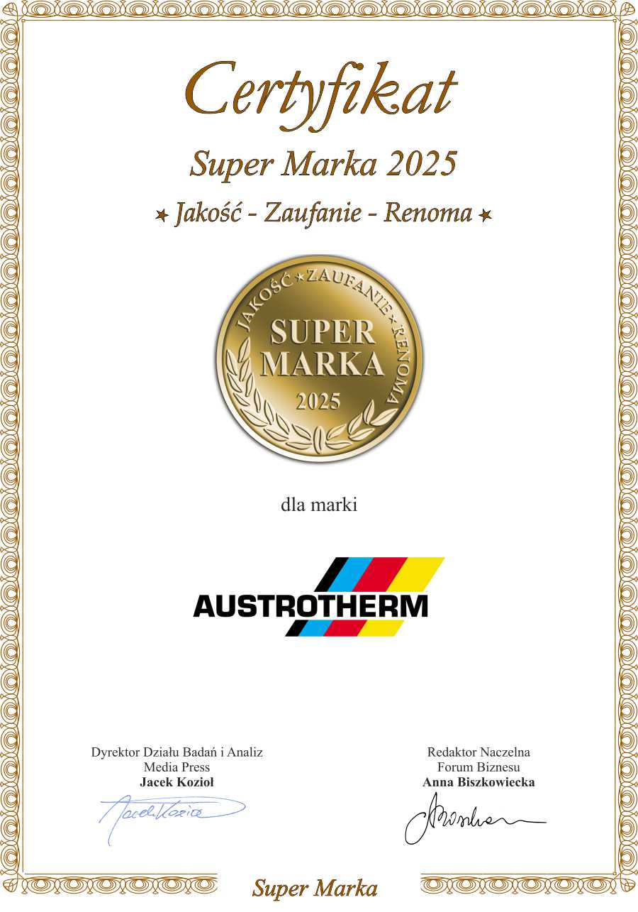 Firma Austrotherm to wieloletni laureat plebiscytu Dobra Marka – Jakość, Zaufanie, Renoma, którego organizatorem jest Redakcja Forum Biznesu oraz Biznes Trendy. Również w tegorocznej edycji konsumenci ocenili markę Austrotherm jako rzetelnego i godnego zaufania producenta materiałów termoizolacyjnych w Polsce. Przedmiotem analiz objęte zostały między innymi pozycja rynkowa marki i jej siła, jakość produktów oraz to, co najważniejsze - stopień zaufania konsumentów.