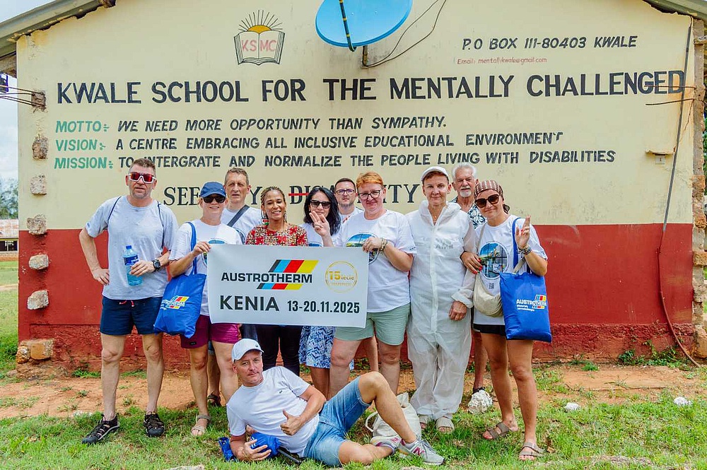 Jednym z takich miejsc, które edukuje, wspiera, zapewnia ciepły posiłek i dach nad głową jest szkoła specjalna w Kwale, położona w samym sercu hrabstwa o tej samej nazwie i którą w listopadzie delegacja firmy Austrotherm, złożona z pracowników i klientów, miała zaszczyt odwiedzić. Szkoła prowadzi zajęcia dla blisko 200 uczniów między innymi z upośledzeniem fizycznym, porażeniem mózgowym oraz autyzmem. Placówka utrzymuje się przede wszystkim z datków od różnych organizacji, dzięki którym może zaspokoić bieżące potrzeby. A jest ich naprawdę mnóstwo – od tych podstawowych, jak jedzenie, po te całkowicie poza zasięgiem, jak wyposażenie internatu, czy remont budynków.