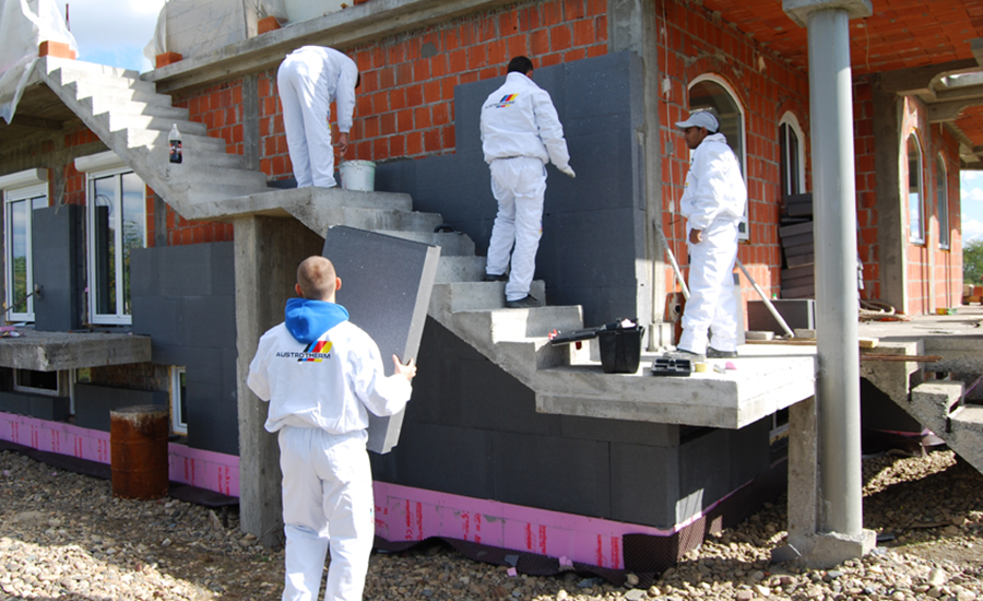 Najczęściej do ocieplenia ścian zewnętrznych stosuje się polistyren ekspandowany EPS, czyli styropian. Jest on dostępny w dwóch wersjach – jako białe lub szare płyty. Tradycyjnie stosowany jest biały styropian, jednak racjonalnym wyborem zapewniającym obowiązujące rygorystyczne wymagania dotyczące energochłonności budynków będzie szary EPS. Dlaczego? Przede wszystkim dzięki zastosowaniu związków atermicznych charakteryzuje się dużo lepszymi właściwościami termoizolacyjnymi, nieosiągalnymi dla białego styropianu. Na przykład szare płyty Austrotherm EPS Fassada Premium mają współczynnik λD na poziomie 0,031 W/(m·K). W praktyce skutkuje to redukcją grubości warstwy ociepleniowej nawet o 30% przy zachowaniu tych samych parametrów termoizolacyjnych w stosunku do białego EPS. Dzięki szaremu styropianowi bez najmniejszych problemów zrealizujemy budynek o niskim zapotrzebowaniu na energię. Należy również podkreślić, że odpowiednio dobrany styropian ma ogromny wpływ na komfort użytkowania domu – zimą zatrzymuje ciepło w domu, a latem nie dopuszcza do przegrzania pomieszczeń, tym samym minimalizując koszty związane z ogrzewaniem oraz chłodzeniem. I jeszcze kilka praktycznych zalet szarego EPS – cieńszy styropian jest łatwiejszy w montażu, stolarka okienna może być osadzona płycej, a przez to wnętrza są lepiej doświetlone.